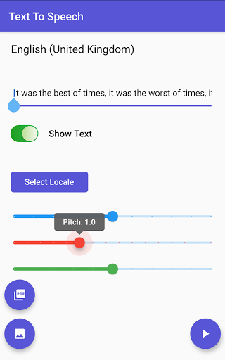 App reads your text from Text , you can text through typing or Pdf or Image with different locales