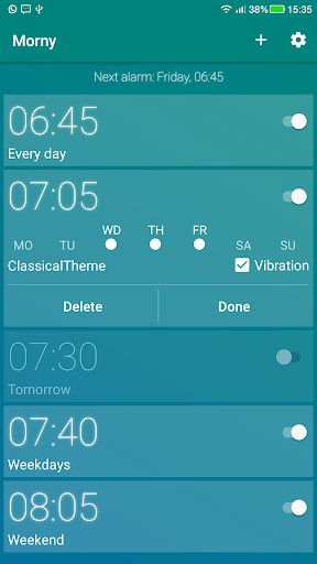 Want to wake up to the chorus of your favorite song? Morny can not only pick your favorite music, but also cut it in any way you want!