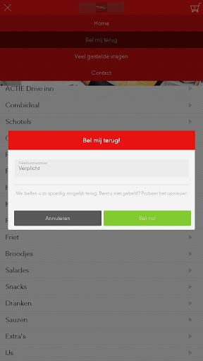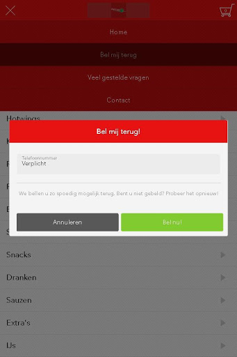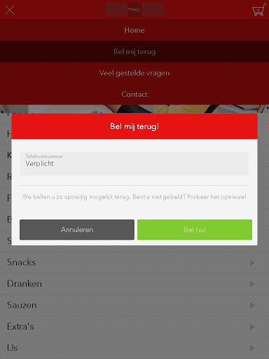 Heeft u een vraag en/of opmerking over een bepaald gerecht en wilt u teruggebeld worden door ons? Dit kunt u doen door op de ‘’Bel mij terug’’ knop te drukken en u wordt kosteloos door ons teruggebeld!