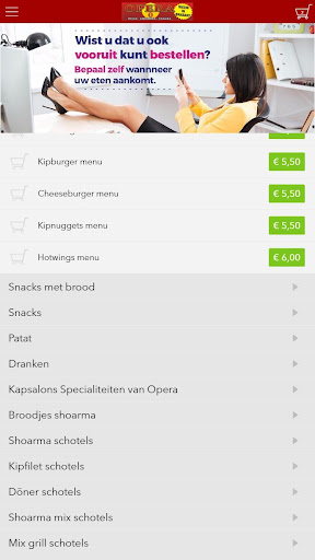 De Opera 2 app is gemaakt om gemakkelijker en sneller een bestelling te kunnen plaatsen door middel van een simpele menukaart. In de menukaart kunt u onder andere kiezen voor populaire gerechten, maar u kunt ook zelf ook een menu opstellen.