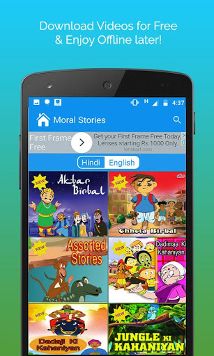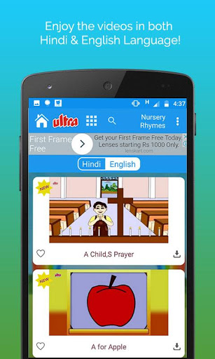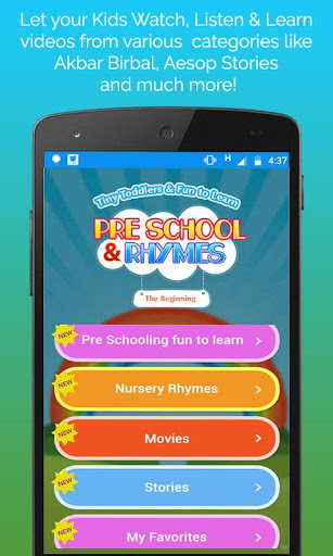 This app Has Learn & Play Videos, Nursery Rhymes Videos, Moral Stories (Akbar Birbal, Aesop Fables, Grandma & Grandpa Stories), Movies - both in English & Hindi Language.
