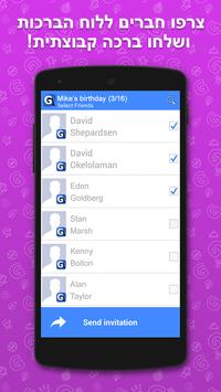 האפליקציה מאפשרת להזמין מברכים מתוך מאגר החברים שלכם ב"פייסבוק" וליצור ברכה קבוצתית דיגיטלית, משולבת תמונות, מלל וסרטוני וידאו קצרים, מחוץ לרשת החברתית ובקובץ יחיד. לאחר מכן תוכלו