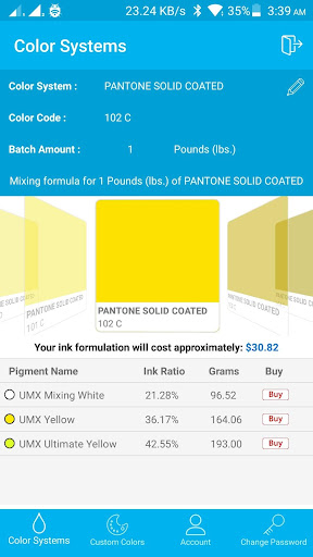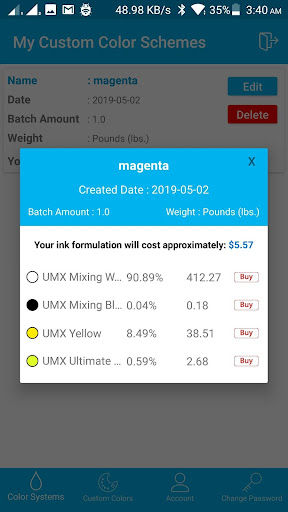 This is the most versatile and up to date color mixing system to date. Total Ink Solutions has invested incredible resources into developing the most accurate and cost effective way for any shop whether they are small or large to offer custom matched colors, as well as shop created custom colors specific to a client. Using the new UMX system your account access is now portable, and you can look up colors to mix from any mobile device using the new mobile app.
