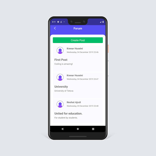 As University of Tetova , we have prepared an application in order for Android users to use with pleasure. We have provided easy access to announcements, news and calls published on our university's website. The app is made specifically for the students of University of Tetova. We have managed to make it very easy to access their schedules for the academic year. Besides this we have created a very enjoyable and user-friendly interface so the users can navigate easily through the app services. We have integrated a discussion forum into the app to make it easy for the students to share ideas and communicate with each other in the same study program.