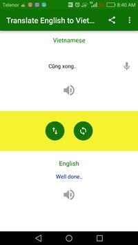 Translate English to Vietnamese and Vietnamese to English with this FREE app. It can translate text, words and sentences in split seconds. It is like a dictionary and used for words meaning and accurate pronunciation.