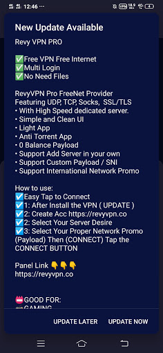 The description of Revy VPN Pro is a A Lightweight High Speed SSH HTTP SSL Tunnel for Android using SSH SSL HTTP CONNECT Method