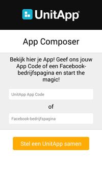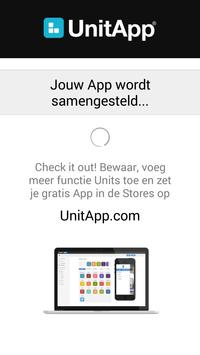 Vul je App Code in of geef een Facebook bedrijfspagina en je UnitApp zal worden getoond. Je kan je App op slaan, delen of je kan het opnieuw proberen.