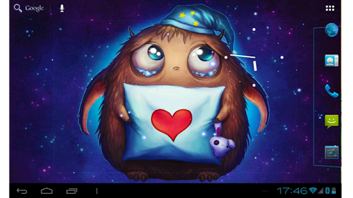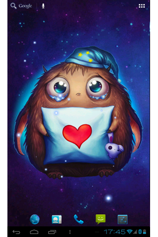Give this wallpaper to your kids and they will never cry at night. Let them play with our cutest Booboo. Interactive Live Wallpaper for your kids perfect with movement and intelligent sensors. Play with it,watch booboo looking to your finger tips.make him fly with his little wings.make your Device cute and sweet.