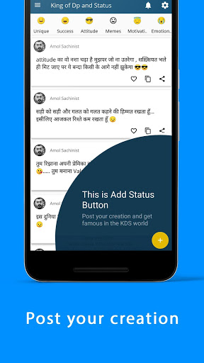 Our main moto is User can upload status/pic/dp/meme/thoughts in our app.