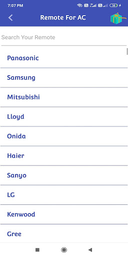 1- After download this Air conditioner Remote Control application , the first step is to choose your Air Conditioner brand name in the list .