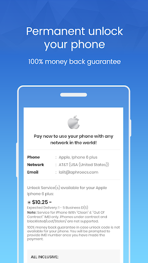 Complete your 100% secure payment on the next page and receive your unique code to unlock iPhone on your submitted email id.
