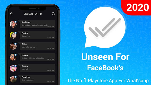 "Hide Unseen for facebook app" is used to read whatsApp messages and Messenger messages without notifying the other user about the double tick or seeing its Means observe your messages from a hidden place that nobody can see your online status.