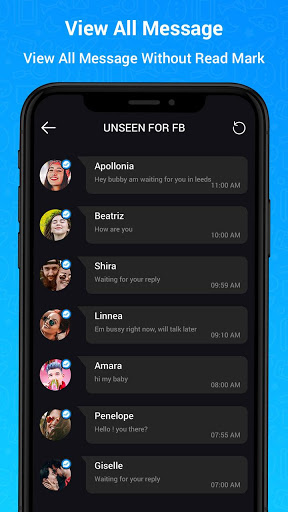 "No Seen for Facebook" is very user friendly when you receive a message from one of the chat apps sponsored. Unseen No Read App will show up in unseen. Wherever you want, User can read these messages without having any of your friends knowing it was seen.