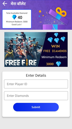 Scratch & win FF Diamond: User can get good feeling as like scratching Scratch card. This app is for entertaining purpose. So, user will get best entertain with scratch card.