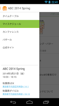 ABC 2014 Spring(http://www.android-group.jp/conference/abc2014s/)用のアプリです。