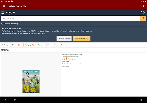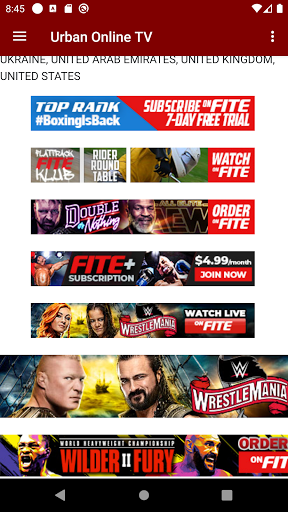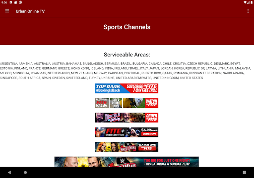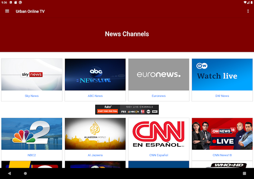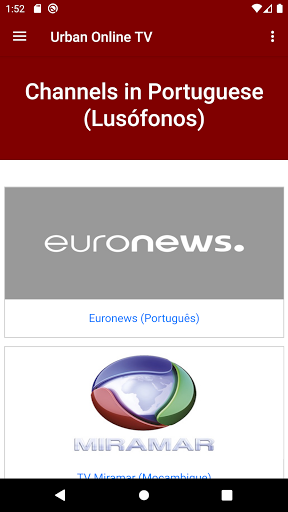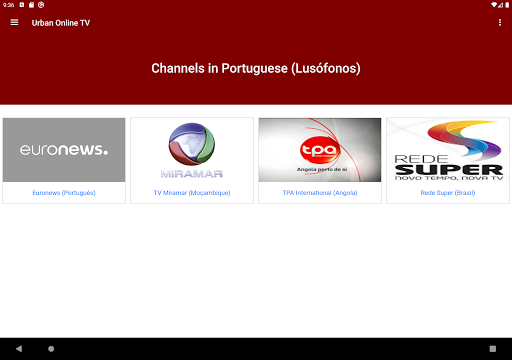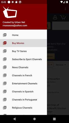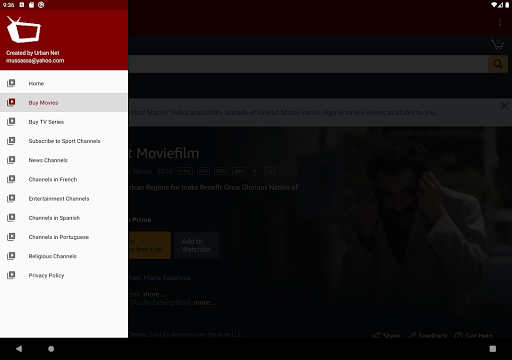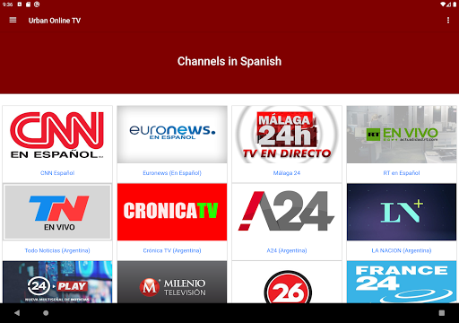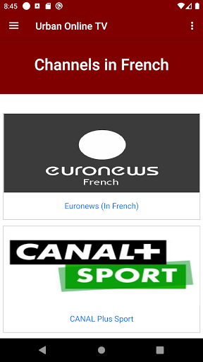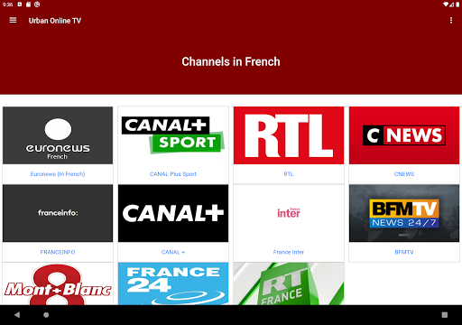 This app allows you to streams live TV, buy movies, TV shows and sport subscriptions. The app is divided in to 9 categories that can be accessed trough the menu. Six of the categories allows you to stream free online TV (News, Channels in French, Channels in Spanish, Channels in Portuguese, Entertainment, and Religious) and the other categories are paid sport subscriptions, buy digital movies, and buy TV shows. You can access this categories from the menu located on the top left corner.