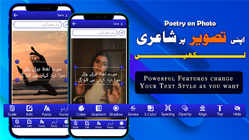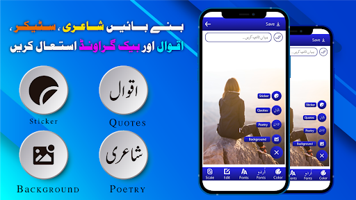 Urdu Stylish Post Maker - Urdu Text on Photos editor is an app to help the user to write easily text on photos with different font and styles, and make fun with their work and also use different languages like English and Urdu on the photo with many beautiful backgrounds and many other more stickers & emojis. Now make a post consistent with things and also insert the stickers within the post which you would like. Such an Easy Urdu post maker app allows you to make a post then you'll add your photo on such a post which can be easy for understanding and feeling others'' real Urdu text on picture. If you wish for poetry, you'll write your favorite poetry In the easy Urdu poster maker master app. This poster app also allows you to write down funny texts on photo themes if you would like to make unique designer funny posts. You can write quotations, poetry, dialogues, jokes, and make a
