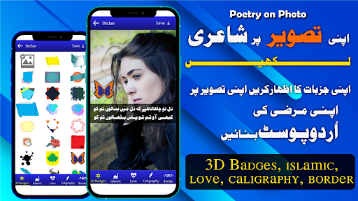 Hundreds of lovely HD background images and Urdu Shayari photo stickers to decorate your post or your Urdu on the picture and also write on photos. it's a trendy Name Maker app For you. If you'd like Urdu Shayari photo to write down on photos and awesome style Write Urdu Poetry on Photo / Shayari Urdu photo app is right for you. you'll wish your friends and relations on their birthday, anniversary, love messages, and funny moment’s pics using Urdu poetry write on Photo by phonto Urdu post maker.