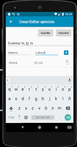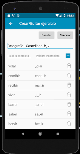 The application is installed with four exercises containing Spanish words, but you can create your own exercises with the words you need to practice at any time,