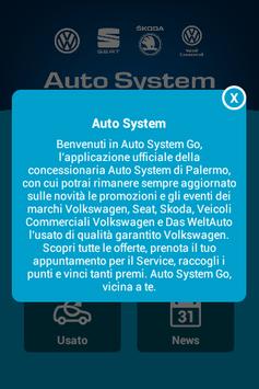 Benvenuti in Auto System Go, l'applicazione ufficiale della concessionaria Auto System di Palermo, con cui potrai rimanere sempre aggiornato sulle novità le promozioni e gli eventi dei marchi Volkswagen, Seat, Skoda, Veicoli Commerciali Volkswagen e Das WeltAuto l'usato di qualità garantito Volkswagen. Scopri tutte le offerte, prenota il tuo appuntamento per il Service, raccogli i punti e vinci tanti premi. Auto System Go, vicina a te.