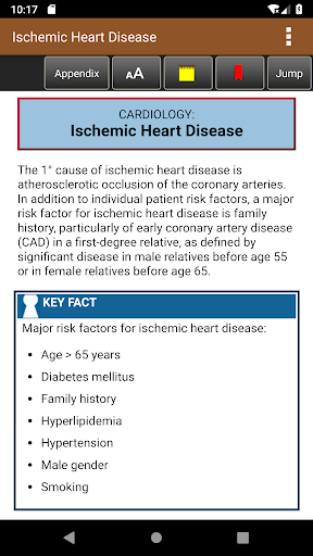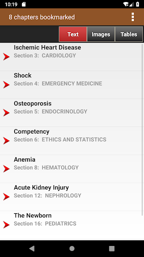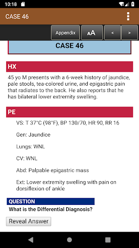 This app is very intuitive and easy to navigate, allowing you to browse the contents or search for topics. The powerful search tool gives you word suggestions that appear in the text as you type, so it is lightning fast and helps with spelling those long medical terms. The search tool also keeps a recent history of past search terms so you can go back to a previous search result very easily. You have the ability to create notes and bookmarks separately for text, images and tables to enhance your learning. You can also change the text size for easier reading. There is also an interactive cases section to simulate patient encounters step-by-step.