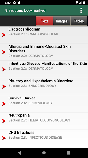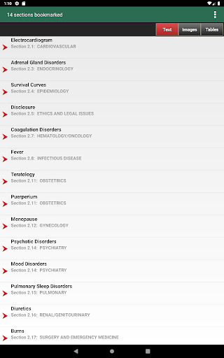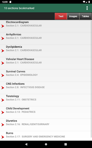 This app is very intuitive and easy to navigate, allowing you to browse the contents or search for topics. The powerful search tool gives you word suggestions that appear in the text as you type, so it is lightning fast and helps with spelling those long medical terms. The search tool also keeps a recent history of past search terms so you can go back to a previous search result very easily. You have the ability to create notes and bookmarks separately for text, images and tables to enhance your learning. You can also change the text size for easier reading.