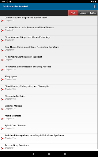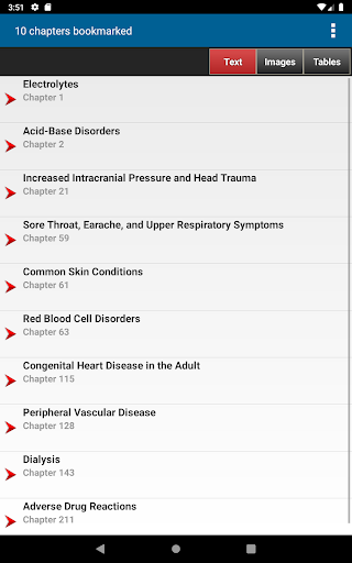 This app is very intuitive and easy to navigate, allowing you to browse the contents or search for topics. The powerful search tool gives you word suggestions that appear in the text as you type, so it is lightning fast and helps with spelling those long medical terms. The search tool also keeps a recent history of past search terms so you can go back to a previous search result very easily. You have the ability to create notes and bookmarks separately for text, images and tables to enhance your learning. You can also change the text size for easier reading.