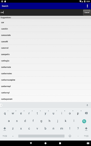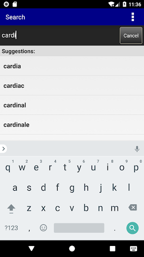 The Search tab only suggests words that appear in this content as you type to help spell long medical terms.