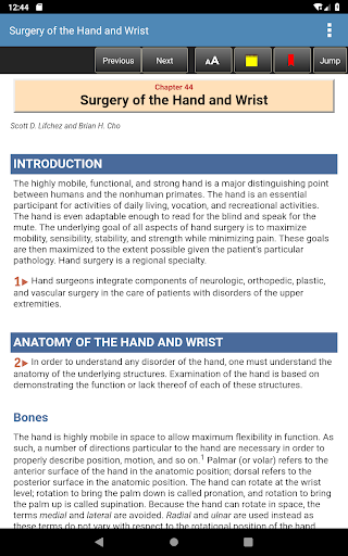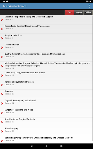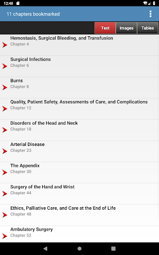 This app is very intuitive and easy to navigate, allowing you to browse the contents or search for topics. The powerful search tool gives you word suggestions that appear in the text as you type, so it is lightning fast and helps with spelling those long medical terms. The search tool also keeps a recent history of past search terms so you can go back to a previous search result very easily. You have the ability to create notes and bookmarks separately for text, images and tables to enhance your learning. You can also change the text size for easier reading.