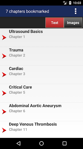 This app is easy to navigate, allowing you to browse the contents or search for topics. The search tool shows you suggestions that appear in the text as you type so it is quick and helps with spelling medical terms. It also remembers past search terms so you can go back to a topic or image very easily. You can also create notes and bookmarks separately for chapters and images to enhance your learning. You can also change the text size for easier reading.