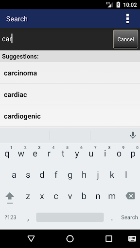 The Search tab only suggests words that appear in this content as you type to help spell long medical terms.