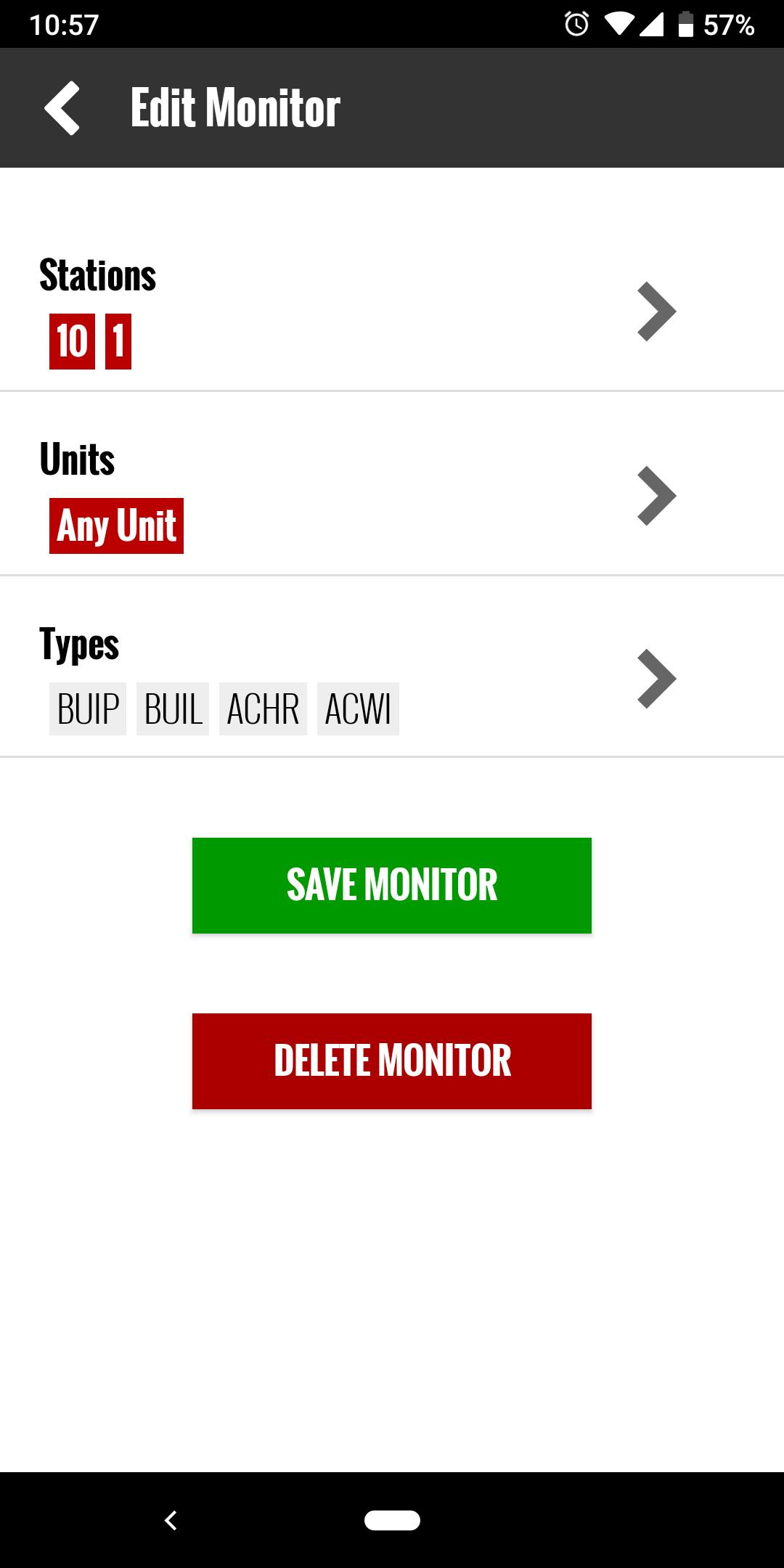 >>Receive alerts for more than just one unit or station. Alert monitors enable users to receive alerts for combinations of units, stations, districts or incident types. Supervisors or special team members can keep up on activities of interest.