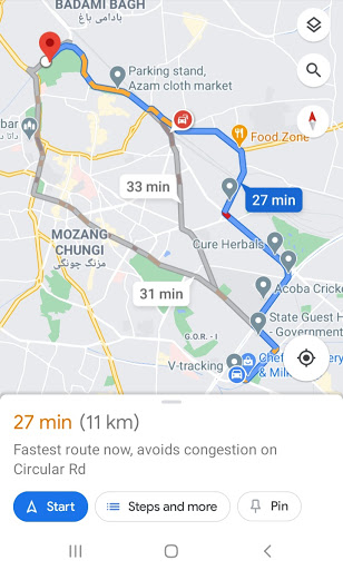 • You can easily navigate to Google Maps by clicking Map button and your current location will be open on Map with red Pin. You can use the all functionalities of Google Map