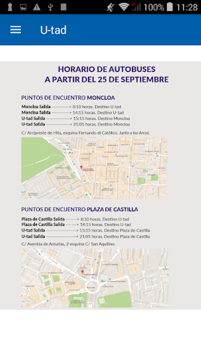 Con el aplicativo U-tad Mobile para Smartphones Android, podrás acceder a los autobuses de ruta de U-tad, incluso organizarte para compartir coche con otros compañeros que vivan cerca.