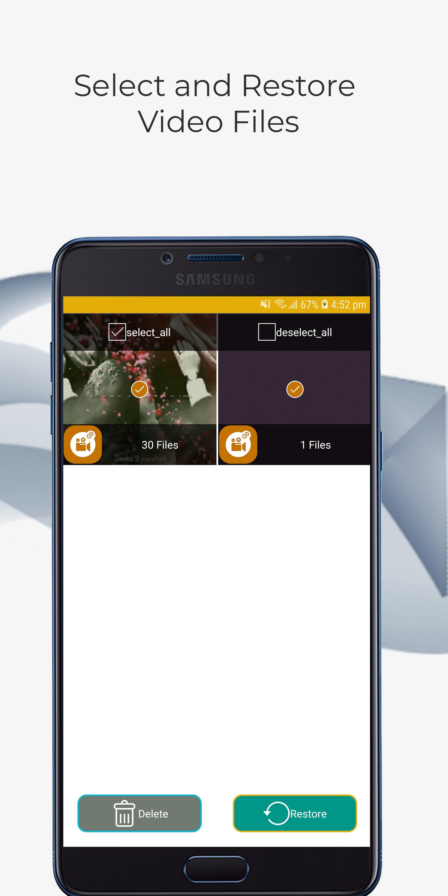 Video recovery app automatically restore deleted files without internet. The application recovers recently deleted video files from mobile phones. No need to root any device to recover deleted video files.
