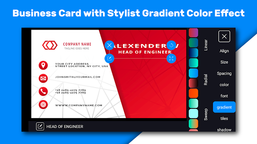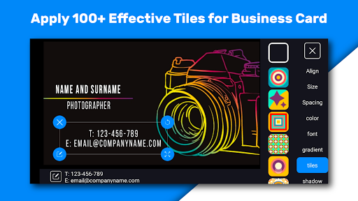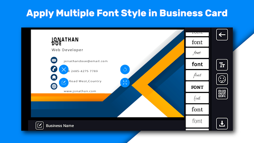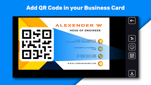 Business Card maker app to create professional visiting cards with QR code. Create a fully customized business card with stylish fonts, stickers, colors, and many more effects.
