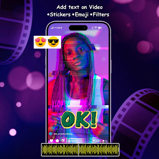 Easy video maker 2024 app - make short videos & reels with songs. Create photo slideshow, trim & join videos/movie, add music, text, stickers, glitch effect, create shorts & make reels with video maker 2024.