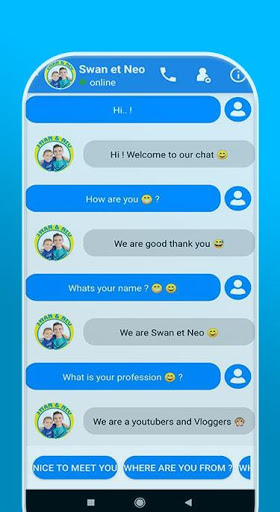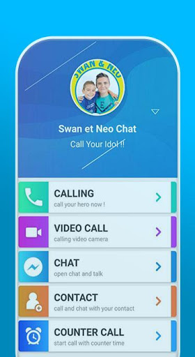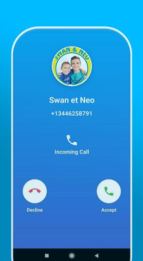 With swan et neo jeux call You can receive a fake call simulate a real voice of swan the voice and also simulate a real video of swan et néo, using this app to have a fun time is very good because to call you idol swan the voice and have a simulation fake call with swan et néo, that makes a very funny moment with your friends, and also you have the option to receive a call and prank you friend, and that shows them that you receive calls from neo et swan, and after that tell the that is just a joke app simulate a fake call neo et swan , and advice them to install this app too because they will receive a funny call from neo et swan , and they will do the same thing using neo et swan app, and pranking their friends.