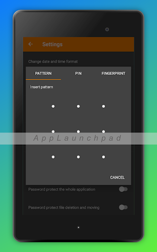 Security : You can lock File Manager Uzli with Pattern, Pin And Touch ID. (ES File Explorer)