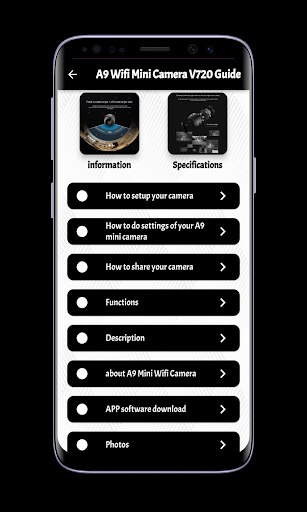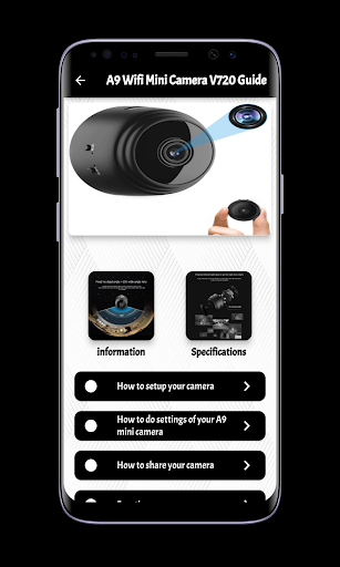 We now present to you the A9 Wifi Mini Camera V720 Guide application