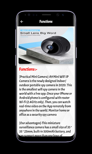 Is there anything you're wondering about the A9 Wifi Mini Camera V720? The application contains explanations about the device’s features, how to set it up, how to set up the A9 mini wifi camera, and frequently asked questions.