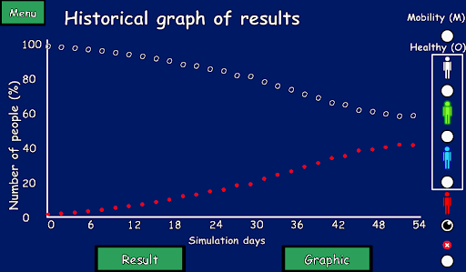8) Parameters such as percentage of vaccinated people (coverage), infectivity and mortality of the disease can be configured. Before each simulation.