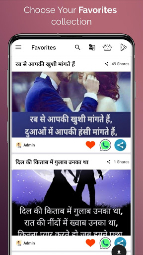 Shayari is one of the best things that is used to place your emotion in front of anyone. This app is one of the best Hindi Shayari & Love Shayari collections also it's totally free and HD Images.