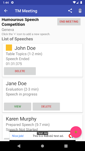 7) Share Meeting option is available to share the meeting's speaker list and their respective time of the speeches through E-mail or Messaging apps.