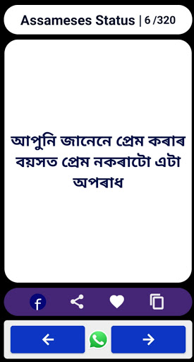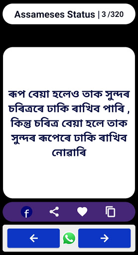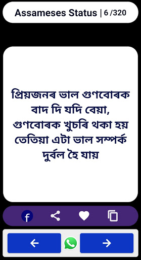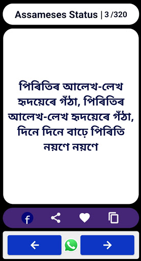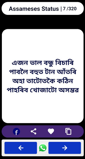 Very easy to use interface just next buttun click and read the Assamese status and easy share to your friends & family.