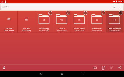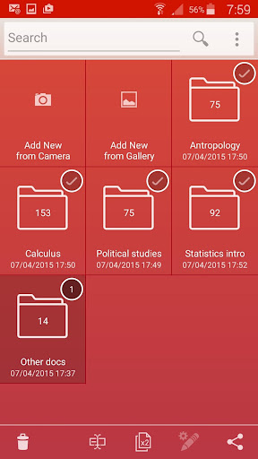 The imported lecture documents appear in the app’s gallery among all the other ones, where you can organize them in folders, combine pages in a single PDF file etc.