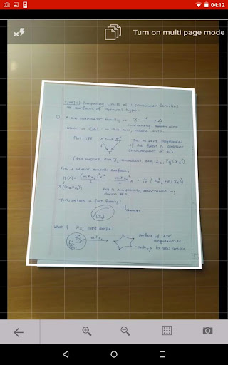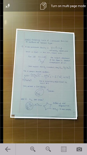 To start scanning choose the camera input option, place the paper notes on a flat surface such as a desktop in the lecture room, point your device’s camera at it and the app will automatically recognize the edges. After snapping a photo of the document you can enhance it using different presets and/or manual sliders. If you are not satisfied with the auto crop, you can also adjust the crop manually.
