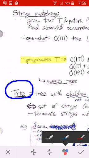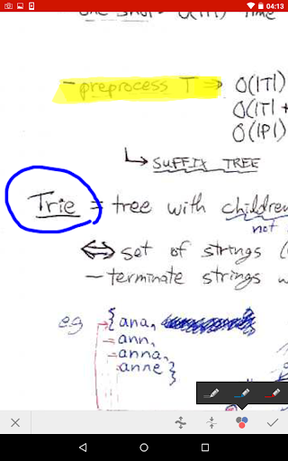After you have imported or scanned the lectures, you can tap its pages to enter annotation mode. You may choose among different annotation tools, such as colorful markers, a pen, text input and different marker colors / thicknesses.