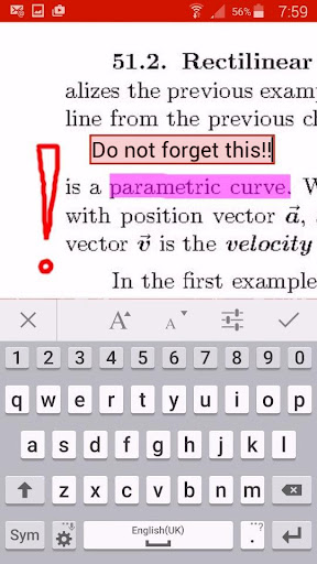 Tap the tool of your choice and underline, highlight, circle, erase or type over the chosen parts of your lecture notes. After you are done adding your annotations you simply save your work and your annotated lecture notes are safely stored in the app and ready to be shared as a PDF file (or JPG pictures if you prefer).