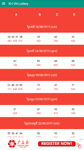 ឆ្នោតខ្មែរ វៀតណាម កម្មវិធីសម្រាប់ពិនិត្យមើលលទ្ធផលឆ្នោតវៀតណាមប្រចាំថ្ងៃ KH VN Lottery | VN Lottery is live result on your cell phone, you can check every time. You can also check history result. It's very easy and very faster.